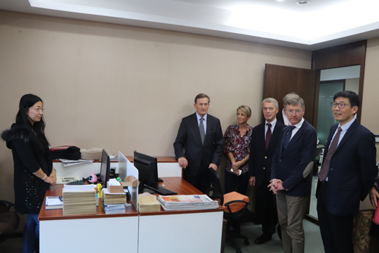 法国鲁昂市律师代表团除了与我市律师协会交流并参观律师事务所外,还参观了海曙区公共法律服务中心与天一公证处,还将参观市中级人民法院诉讼服务中心,并访问宁波大学法学院。