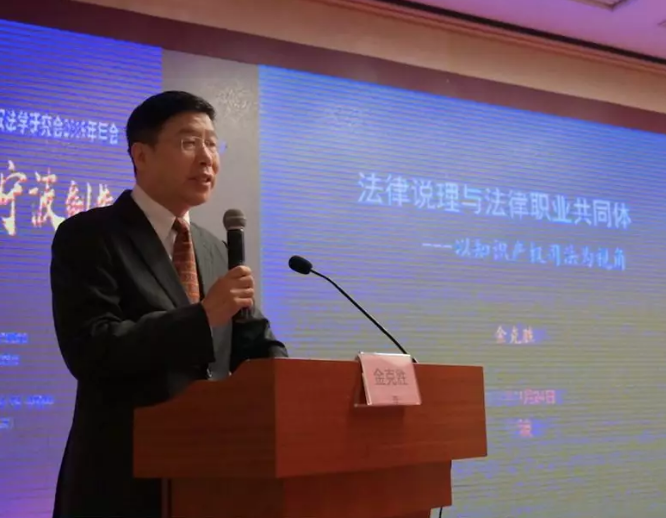 最高人民法院知识产权庭原副庭长、中国知识产权法学研究会副会长金克胜庭长首先做了《知识产权裁判中的法律说理》的主旨演讲。