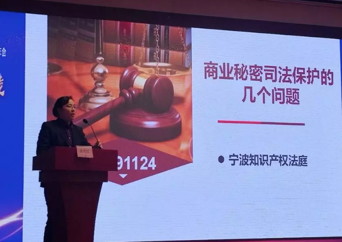 接着由宁波知识产权法庭庭长、宁波市法学会知识产权法学研究会副会长朱代红法官作《商业秘密案件审理中的几个问题》的演讲。